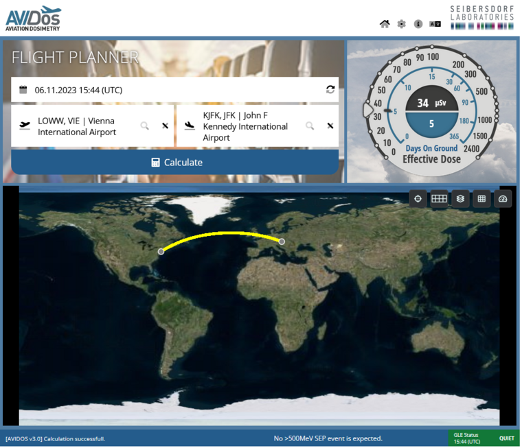Der PUBLIC-Modus wurde für Personen entwickelt, die sich rasch über die Expositionswerte kosmischer Strahlung bei einem bestimmten Flug informieren möchten, ohne sich mit technischen Fragen beschäftigen zu müssen. Der Modus eignet sich daher am besten für Passagiere, die wissen möchten, welcher Strahlungsdosis sie bei einem bevorstehenden Flug ausgesetzt sein werden.